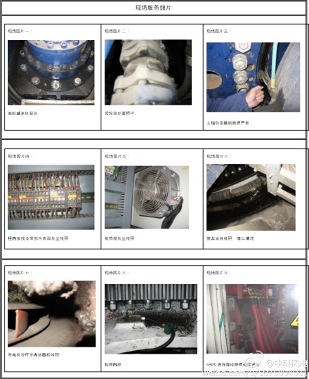 圖片是我公司受業(yè)主委托作為第三方驗收人,針對華銳機組進行出質保前的檢查工作。主要以設備運行安全為主,包括對明顯損壞部件更換;濾芯、高速剎車片更換;齒輪箱油品檢測及漏油故障處理;葉片清洗;油品補充;偏航、變槳齒圈磨損檢驗;通訊系統(tǒng)、水冷系統(tǒng)檢測;電氣回路測量等。