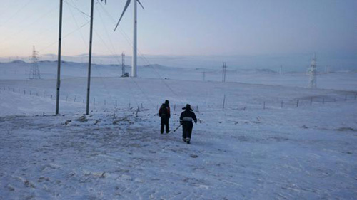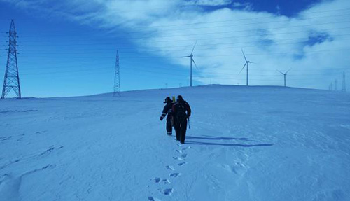 中科風(fēng)電服運(yùn)維隊(duì)伍擁有豐富的實(shí)踐技術(shù)、管理能力和服務(wù)意識(shí),每一位員工都能夠以飽滿的熱情投入工作。在風(fēng)雪交加的冬季,現(xiàn)場(chǎng)道路無(wú)法通行,運(yùn)維工程師堅(jiān)持步行去往現(xiàn)場(chǎng)對(duì)機(jī)組進(jìn)行故障消缺,他們的工作熱情不會(huì)受到天氣等外界環(huán)境因素的影響。下圖為工程師抵抗外力、堅(jiān)守崗位。