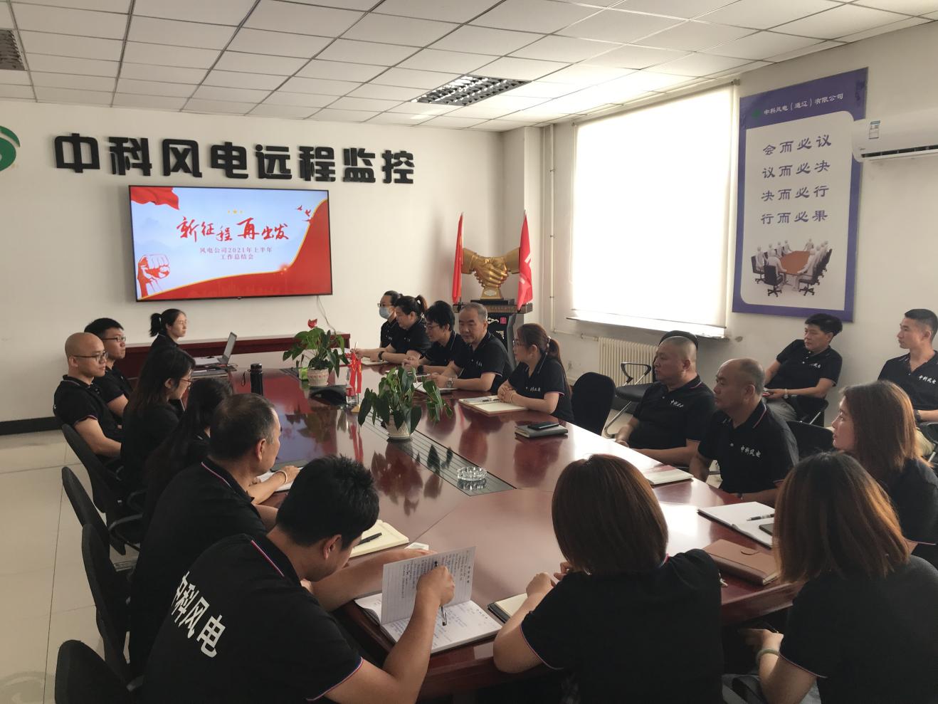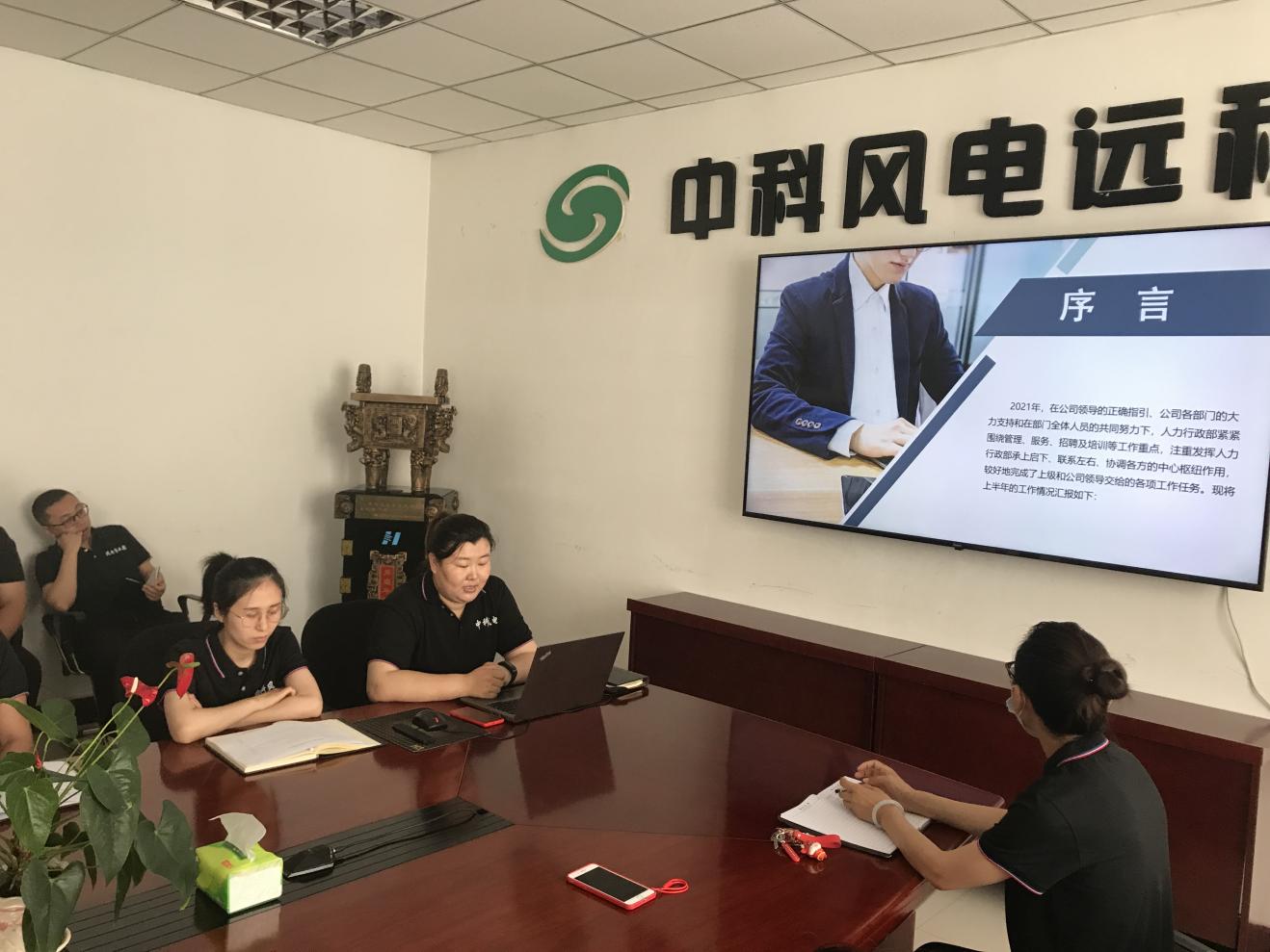 2021年7月9日,風電公司全體員工在公司二樓會議室召開2021年上半年工作總結會。會議由總經理周克林主持,副總經理王娟娟、副總工程師梁大超、總經理助理范影峰及各部門經理,全體員工列席參加。會議總結了各部門上半年各項工作任務目標完成情況、預算執(zhí)行情況,并匯報了各部門下半年重點工作計劃。