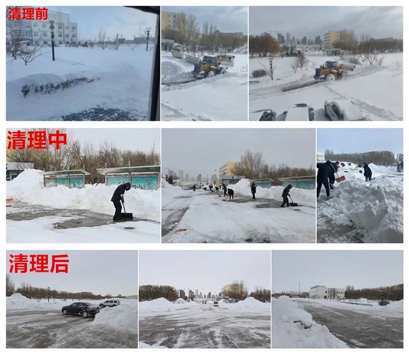 進入立冬,通遼迎來幾十年難得一見大雪天氣,十一月八日,公司同事克服路上的重重困難,每個人都是從自己的小家步行而來單位報道,到了單位之后在公司周總的指揮下,各個部門齊心協(xié)力,用身體打通了去往辦公室的道路,后來公司也組織員工對辦公樓門廳前的積雪進行清理,也請來鏟車對公司的主要通行道路進行了清理。
