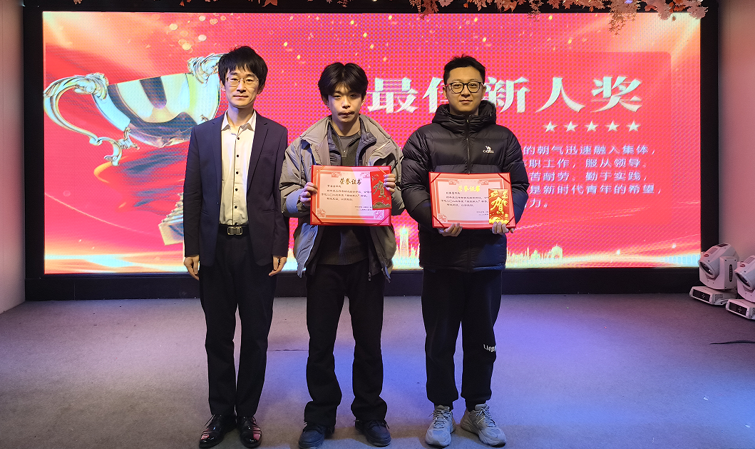 總經(jīng)理助理為最佳新人獎獲得者萬治浩、劉海富頒獎