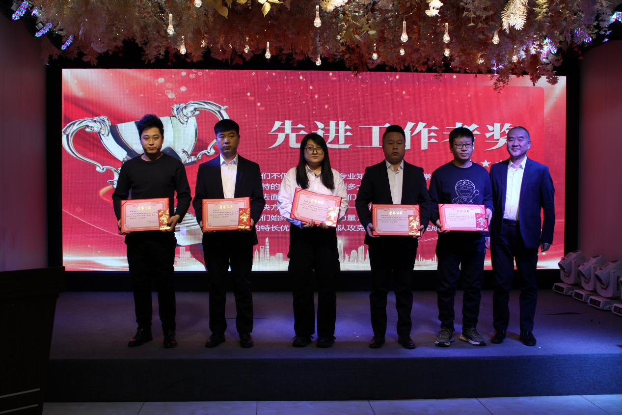 總經(jīng)理為先進(jìn)工作者獲獎?wù)呓鹳、周帥、閆微、鄒亮、周廣吉頒獎